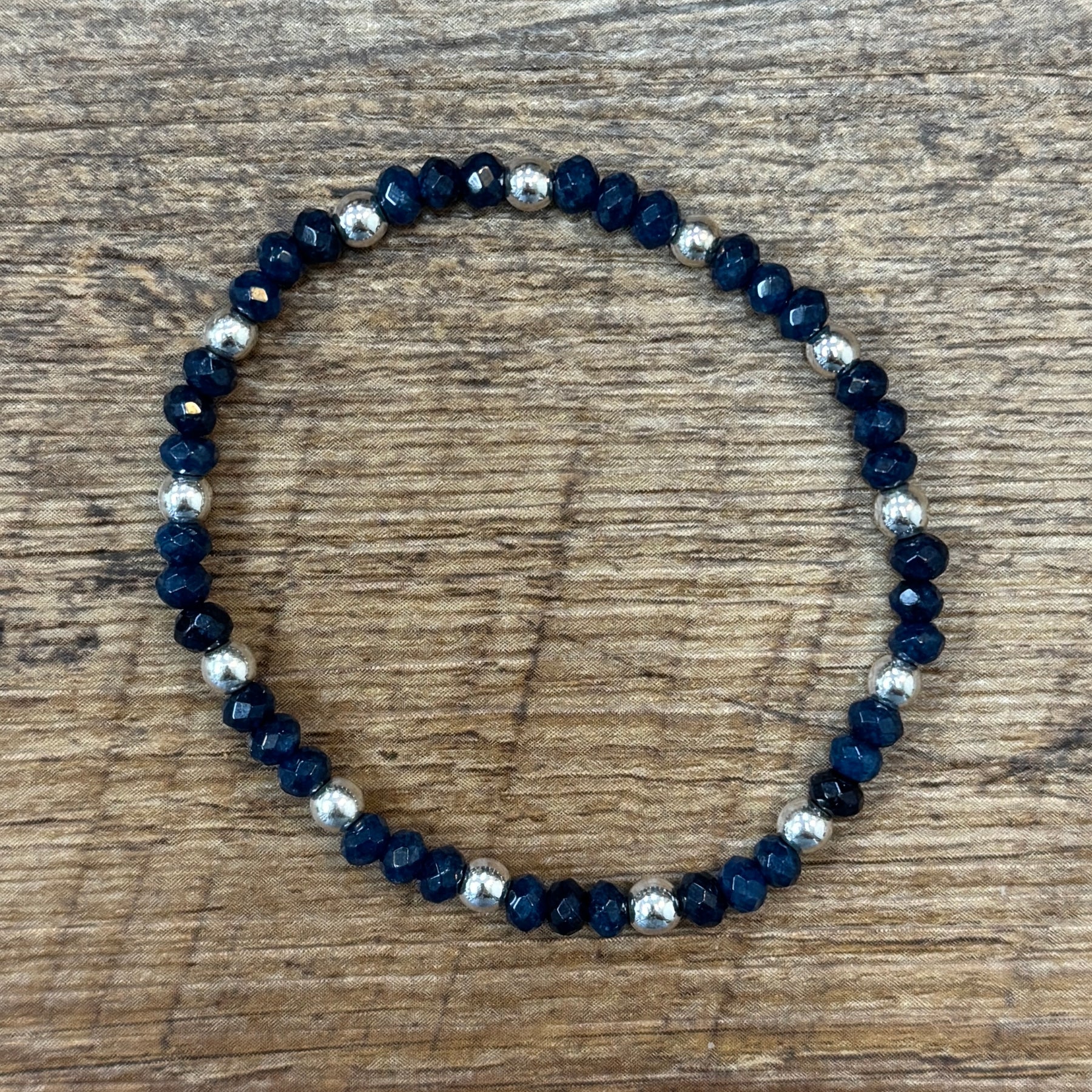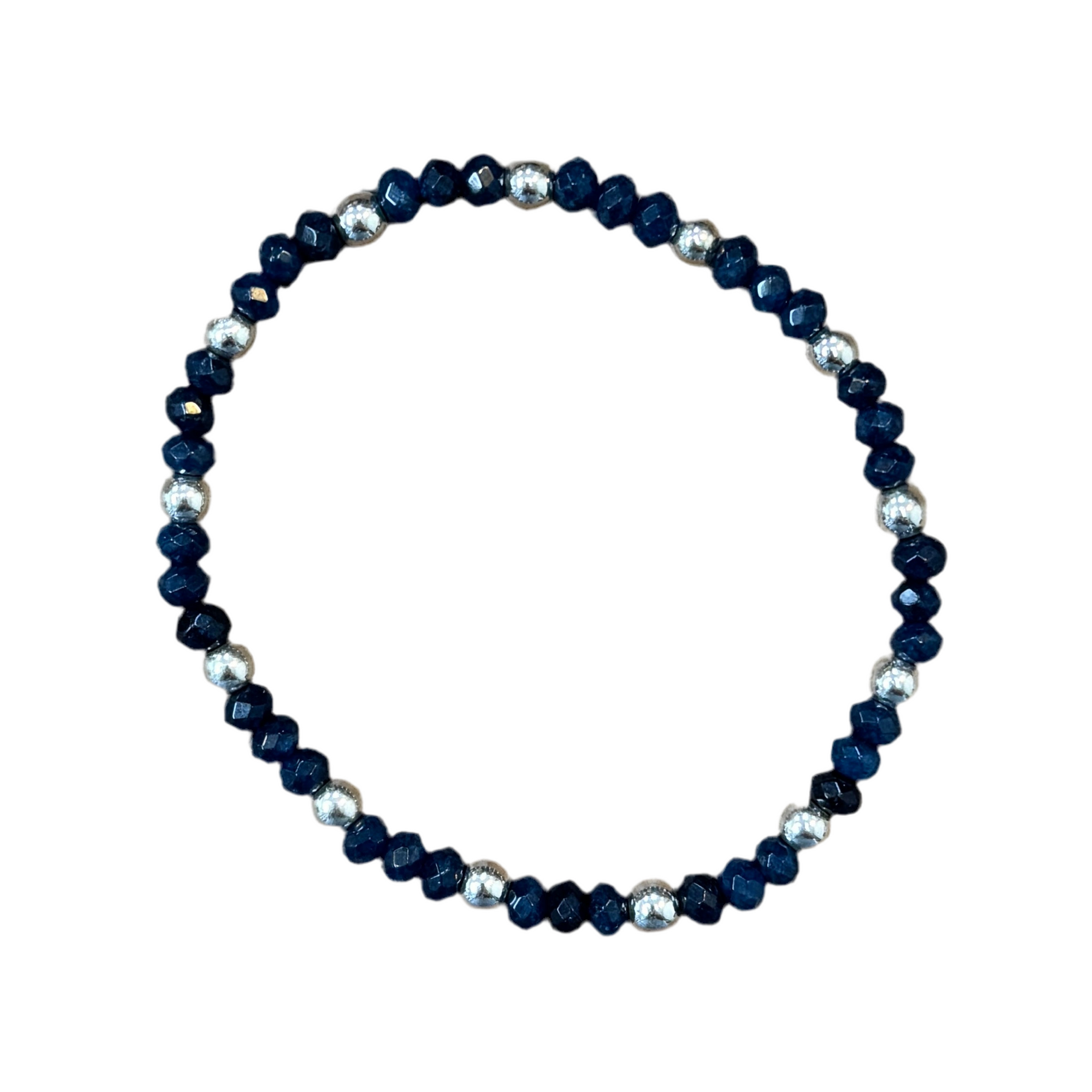 This Deep Blue Chalcedony Silver Pixie 3mm Bracelet features a cool navy color, perfect for adding a pop of color to any outfit. Made with silver and chalcedony, this bracelet is both stylish and versatile.