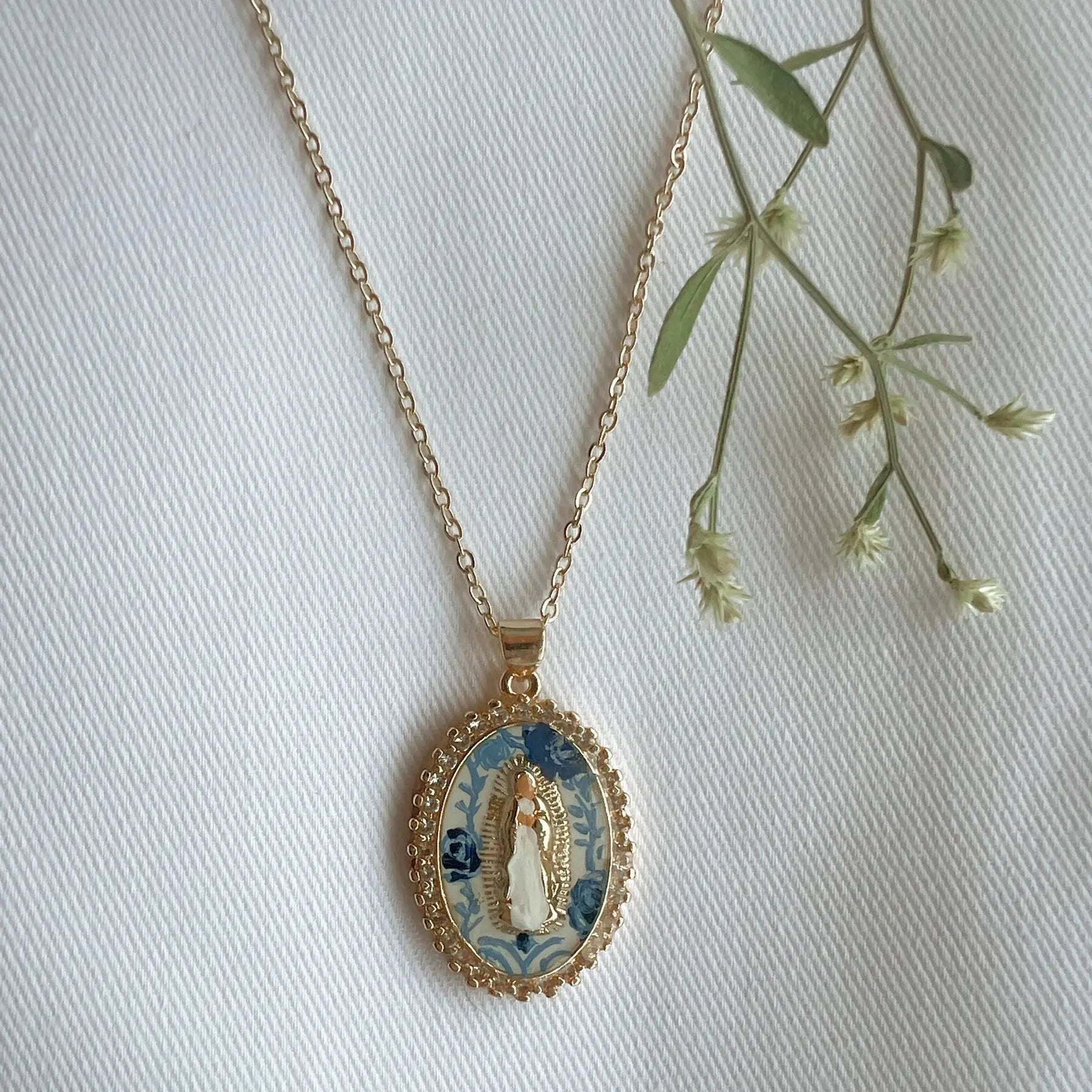 Each necklace is hand painted by Harleigh so each one carries its own unique beauty. The colors will remain the same for the same necklace order but may slightly vary in look from the original. These necklaces also come with a prayer card explaining this version of Our Lady. My goal when painting each necklace is to remind the person wearing it, and others who see it, of the beauty that Mary carried with her and the beauty she continues to show others today.