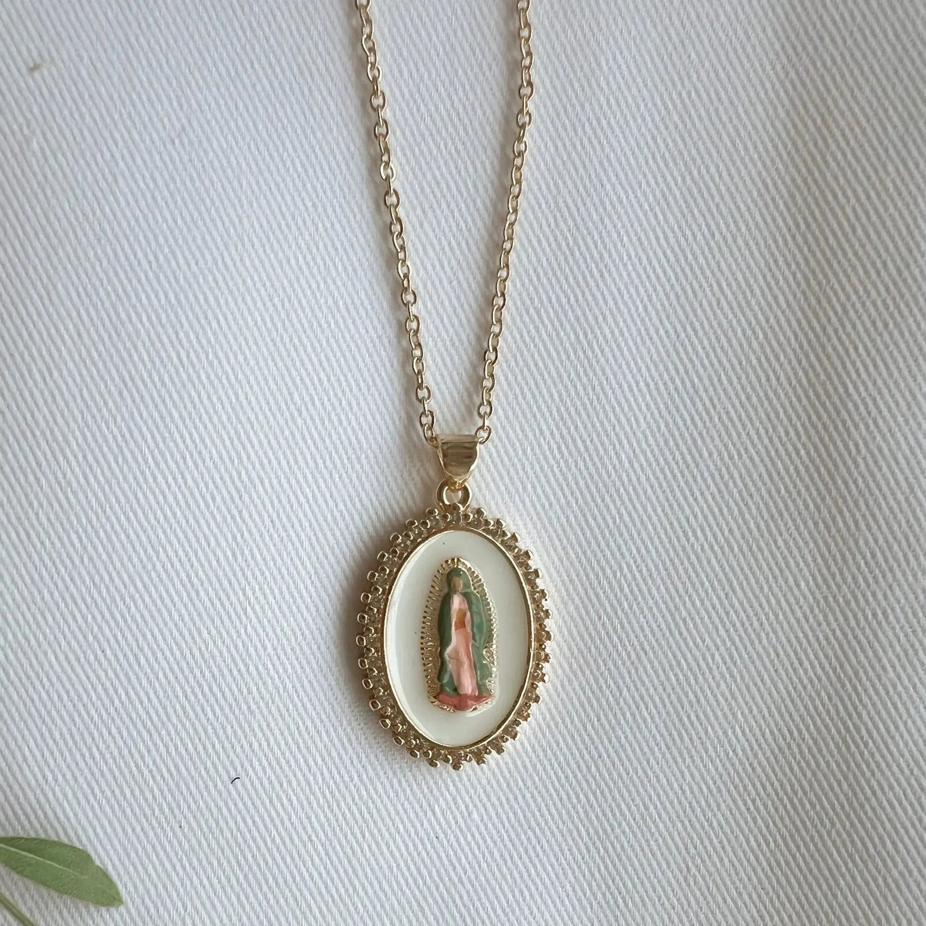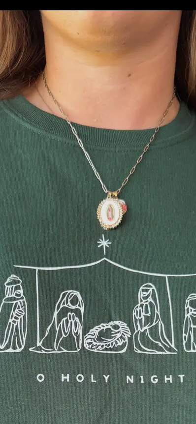 18in Adjustable Chain Each necklace is hand painted by Harleigh so each one carries its own unique beauty. The colors will remain the same for the same necklace order but may slightly vary in look from the original. These necklaces also come with a prayer card explaining this version of Our Lady. My goal when painting each necklace is to remind the person wearing it, and others who see it, of the beauty that Mary carried with her and the beauty she continues to show others today.