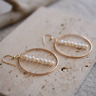 Hepburn Pearl or Gold Beaded Drop Hoop Earrings