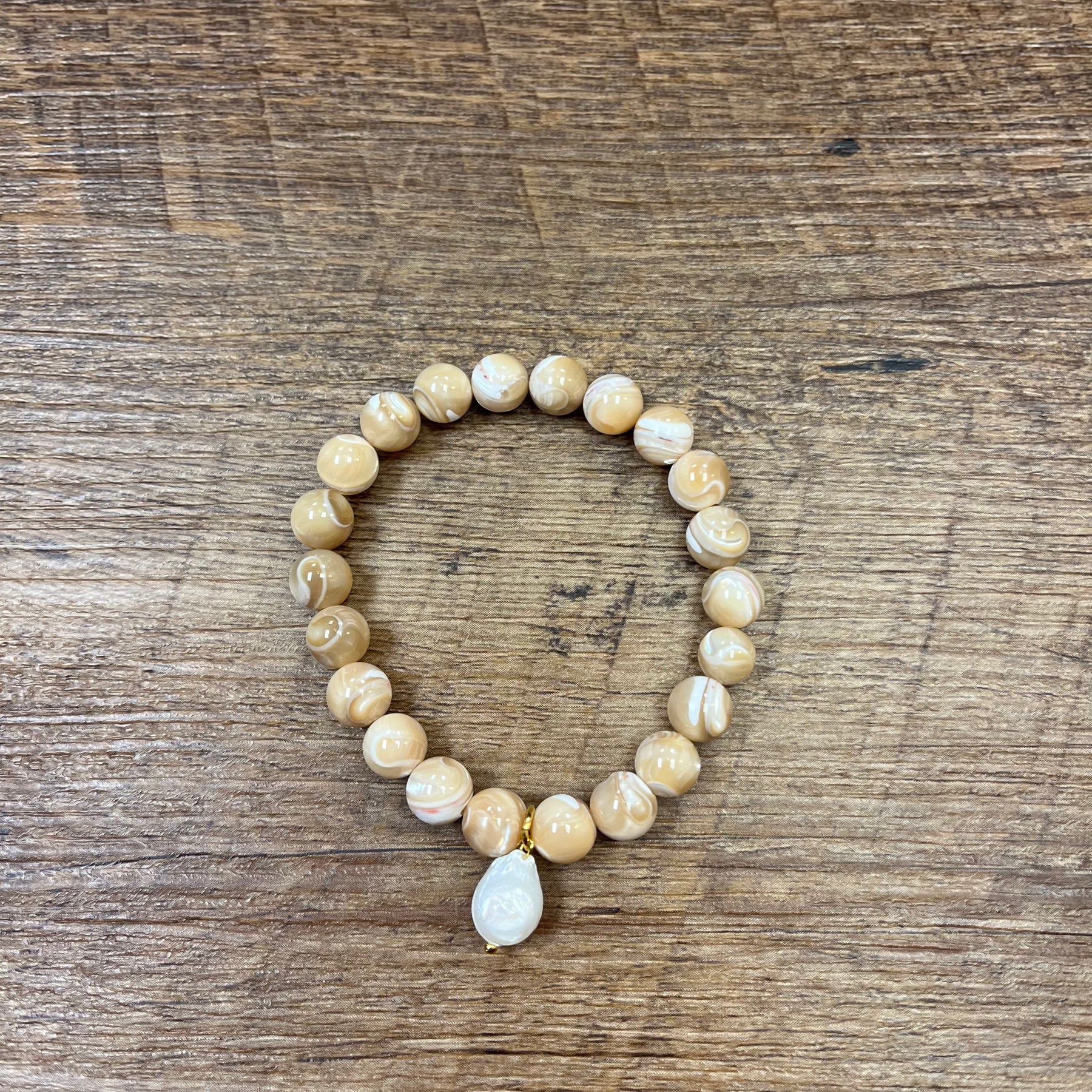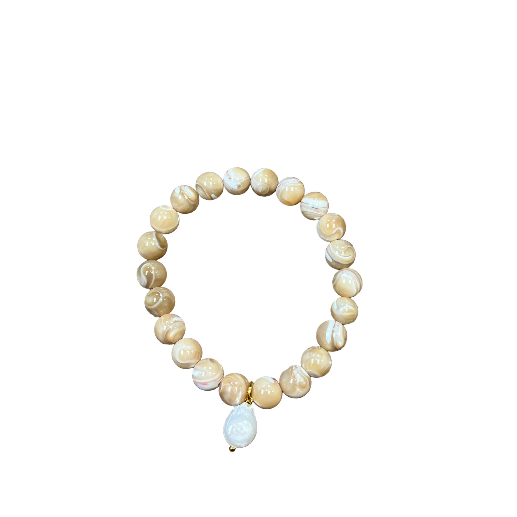 Experience the beauty and elegance of our Della Gold 8mm Bracelet. Made with high-quality tan and cream jade beads.