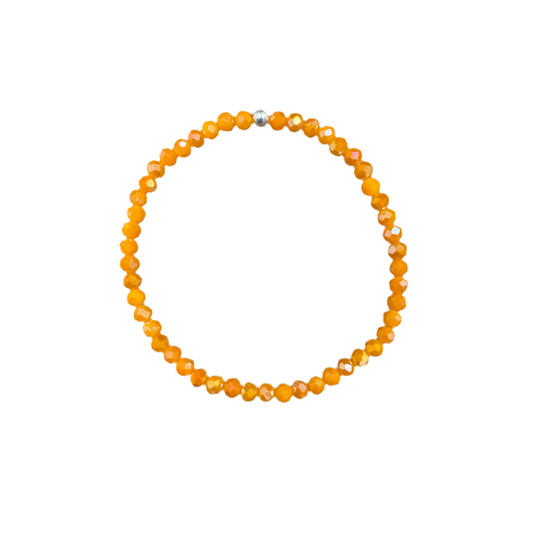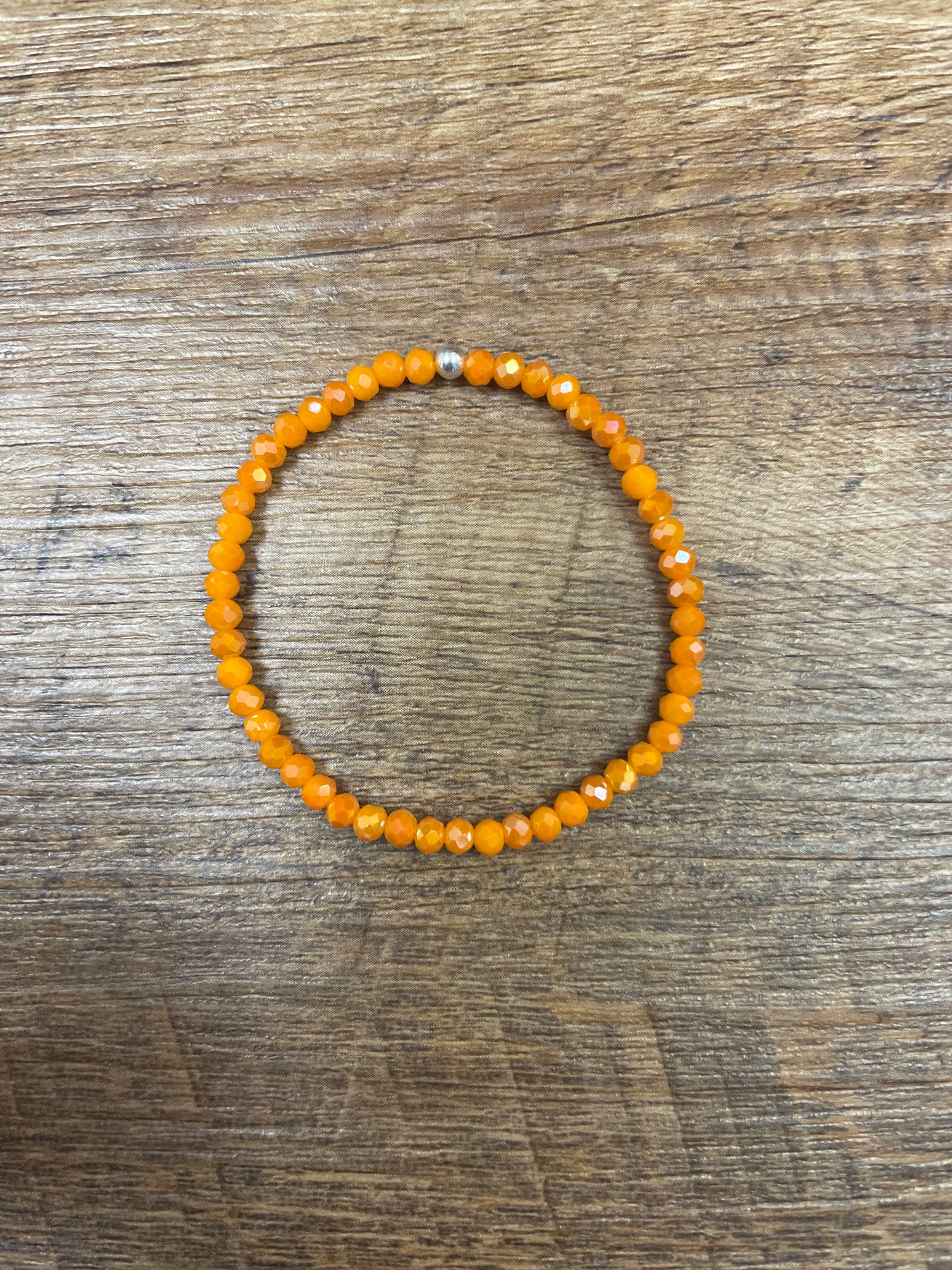 Add a pop of zest to your wrist with this Spicy Papaya Faceted Rondelle Bracelet! These vibrant 4mm beads catch the light and your eye, making every movement a little more joyful. It's the perfect playful accessory to brighten your day and spice up any outfit with a burst of fruity fun.