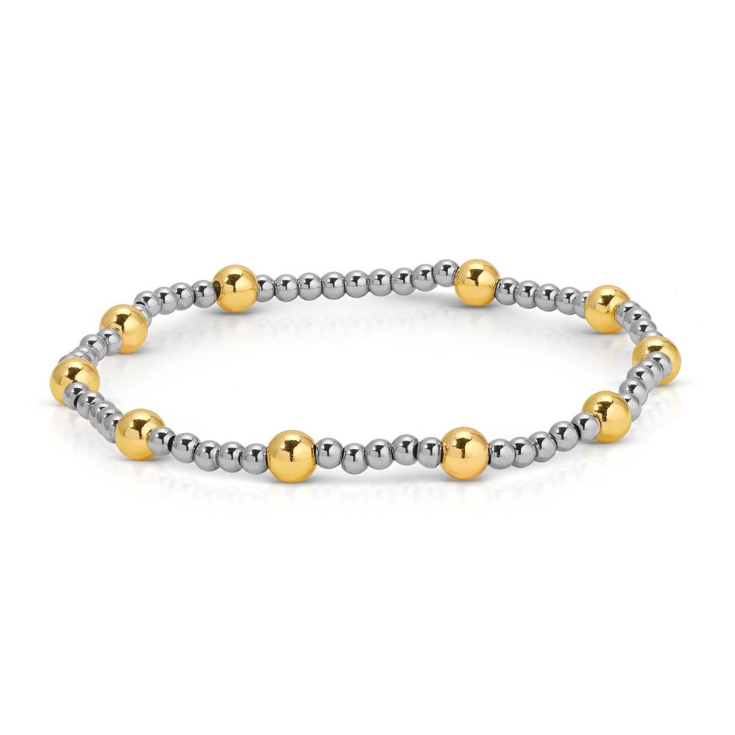 Bracelets 3mm and 5mm Beads 18k Gold and Rhodium Plated Brass Base