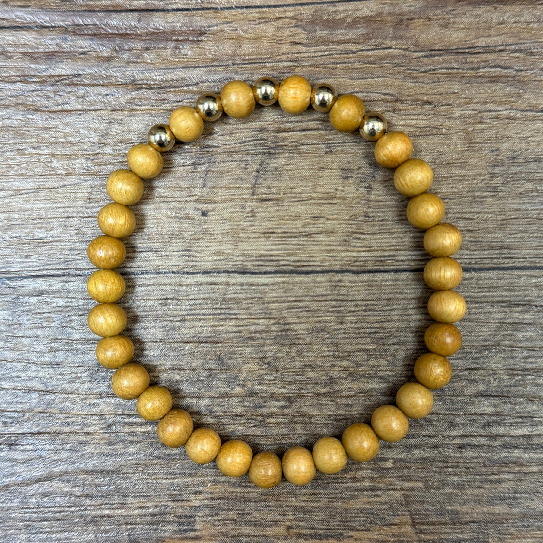 Elevate your style with the Kenley 14kt Gold Filled Jackfruit Wood 6mm Bracelet. The neutral tones of this bracelet make it a versatile accessory that can effortlessly complement any outfit.