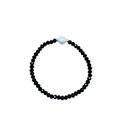 Paige Pearl Sterling Silver Black Faceted Rondelle 4mm Bracelet