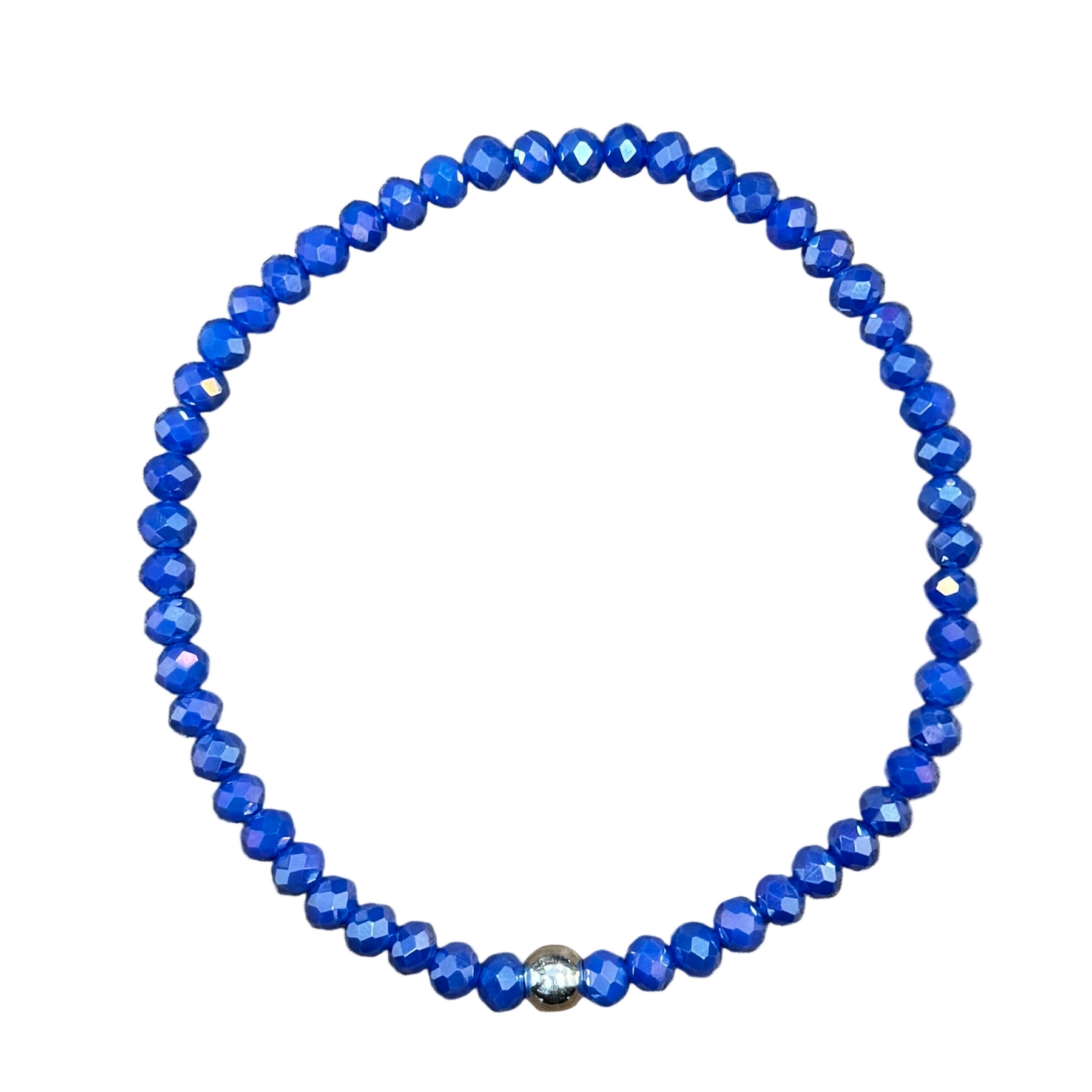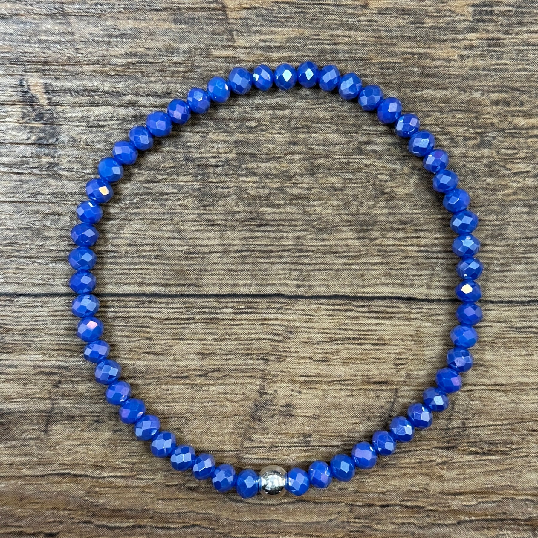 This sparkling Dark Hyacinth AB Faceted Rondelle 4mm Bracelet adds a touch of fun and elegance to any outfit. The faceted rondelle design catches the light and reflects it beautifully, making it pop!