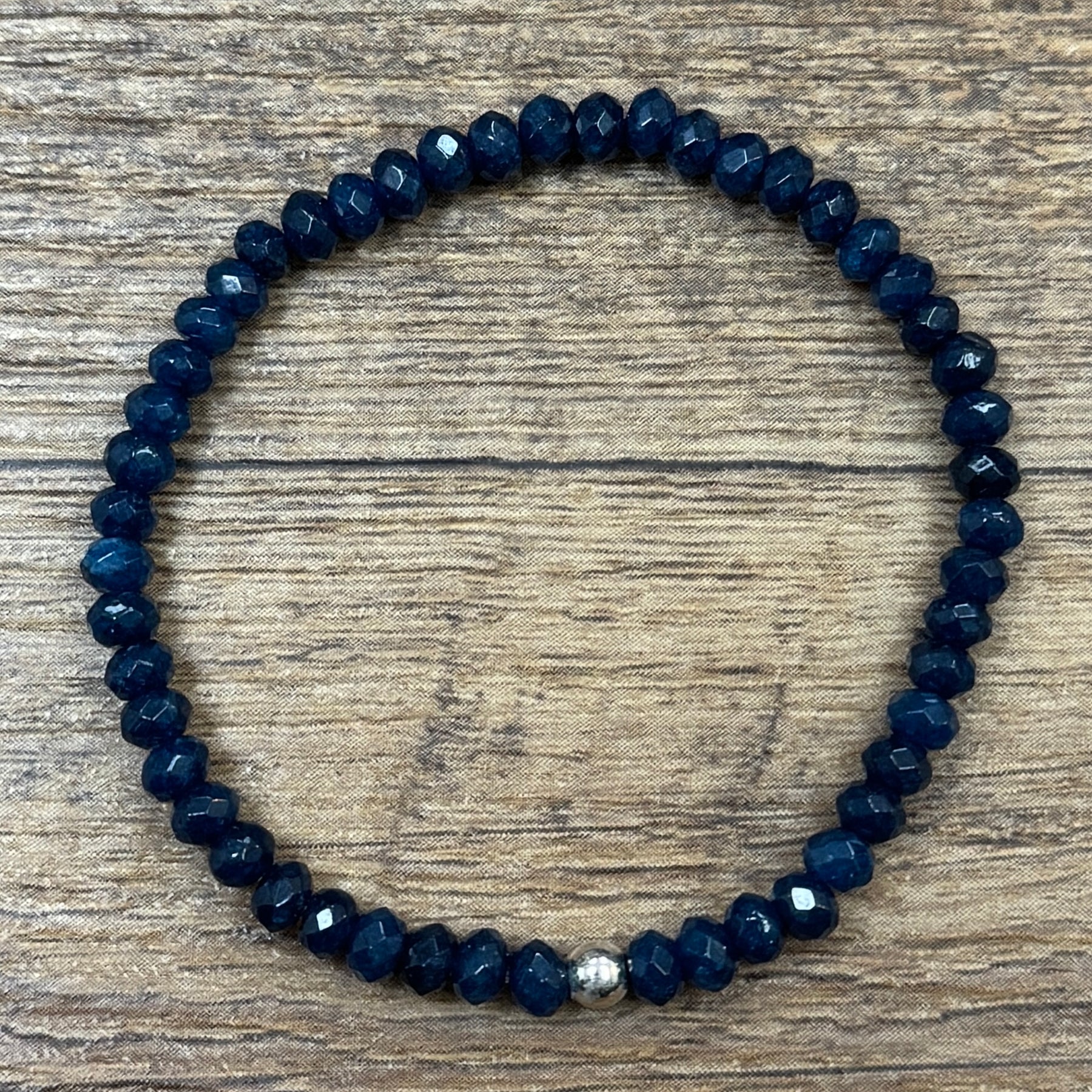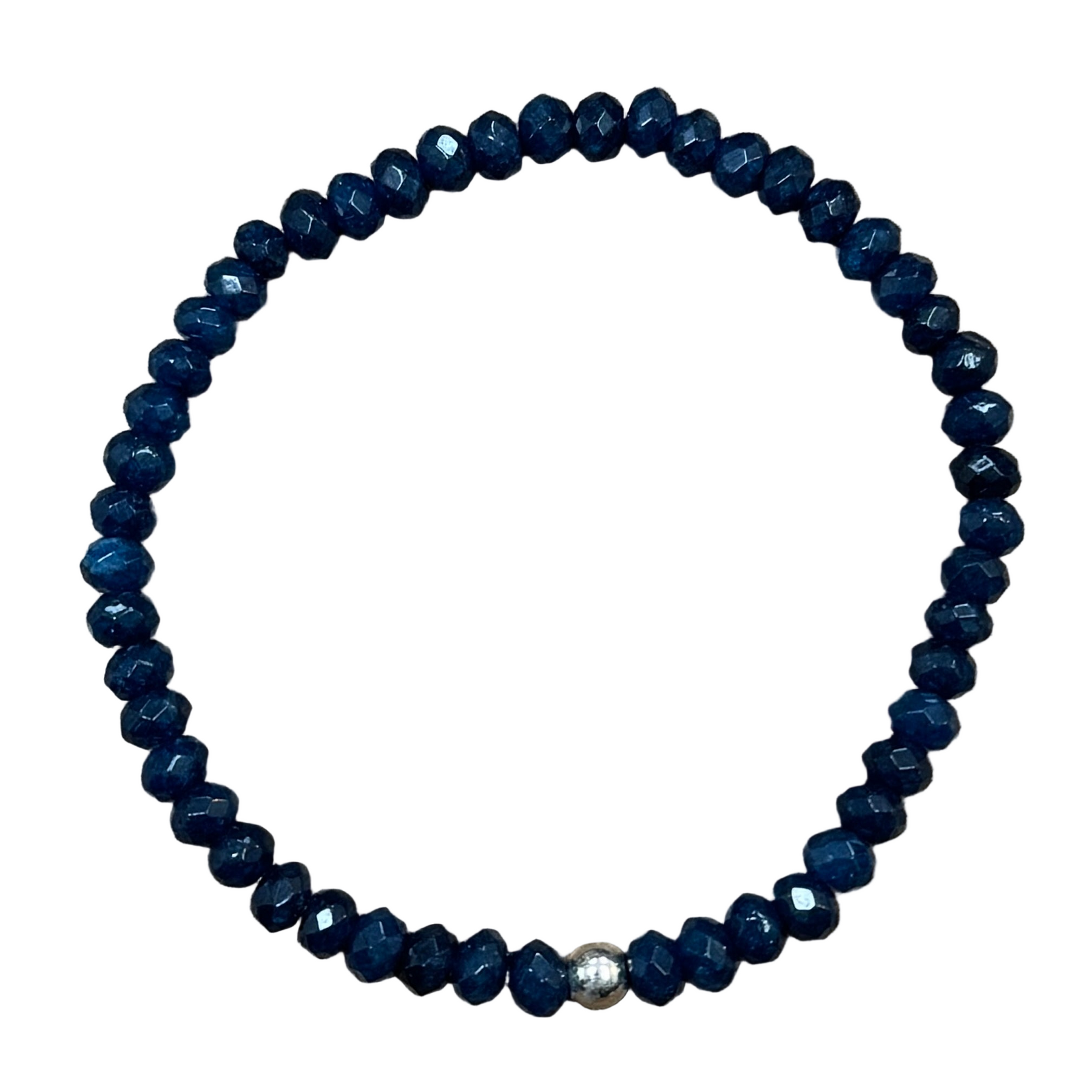 Experience the stunning beauty of our Deep Blue Natural Chalcedony Mini Faceted 3mm Bracelet! The navy color adds a touch of elegance to any outfit.