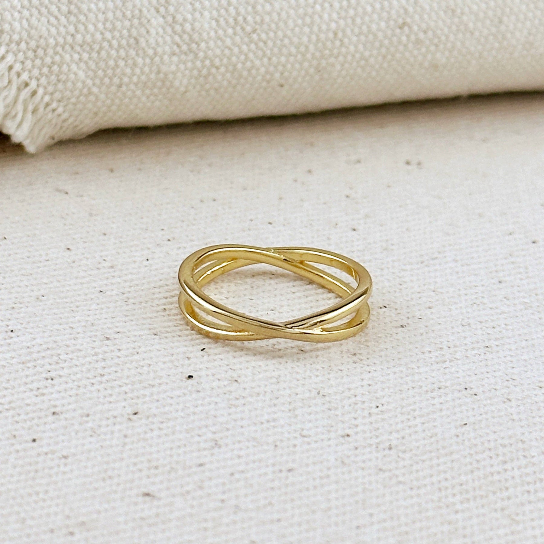 Elegant simplicity meets modern design in this minimalist 18k gold filled X ring. The sleek, intersecting lines create a striking focal point while maintaining a refined aesthetic. Versatile enough for everyday wear yet eye-catching for special occasions, this ring adds a touch of understated luxury to any look. The durable 18k gold filled construction ensures long-lasting beauty and shine.