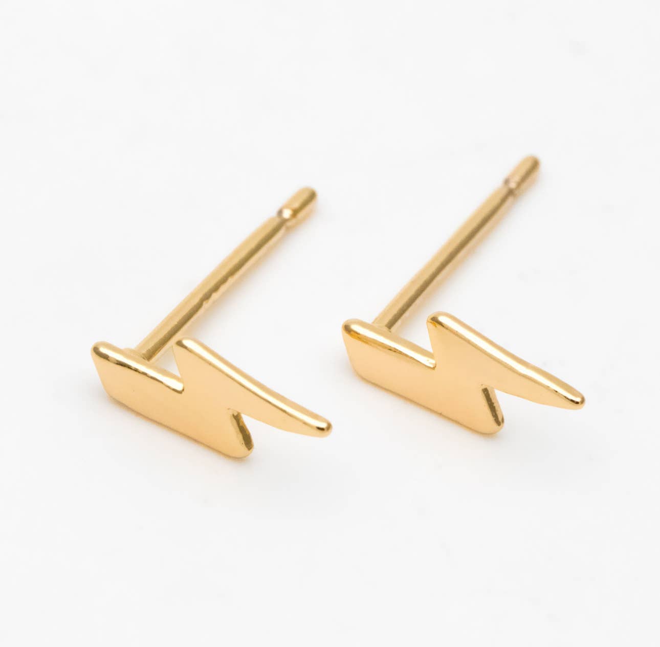 Lightning bolt stud earrings *18k gold plated studs *dainty *9mm x 5mm *hypoallergenic *non tarnish *light weight