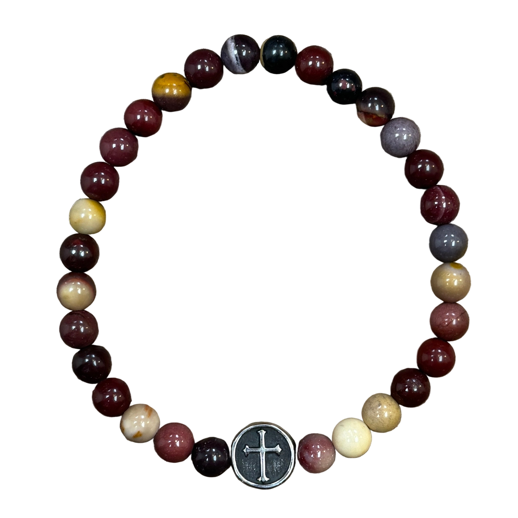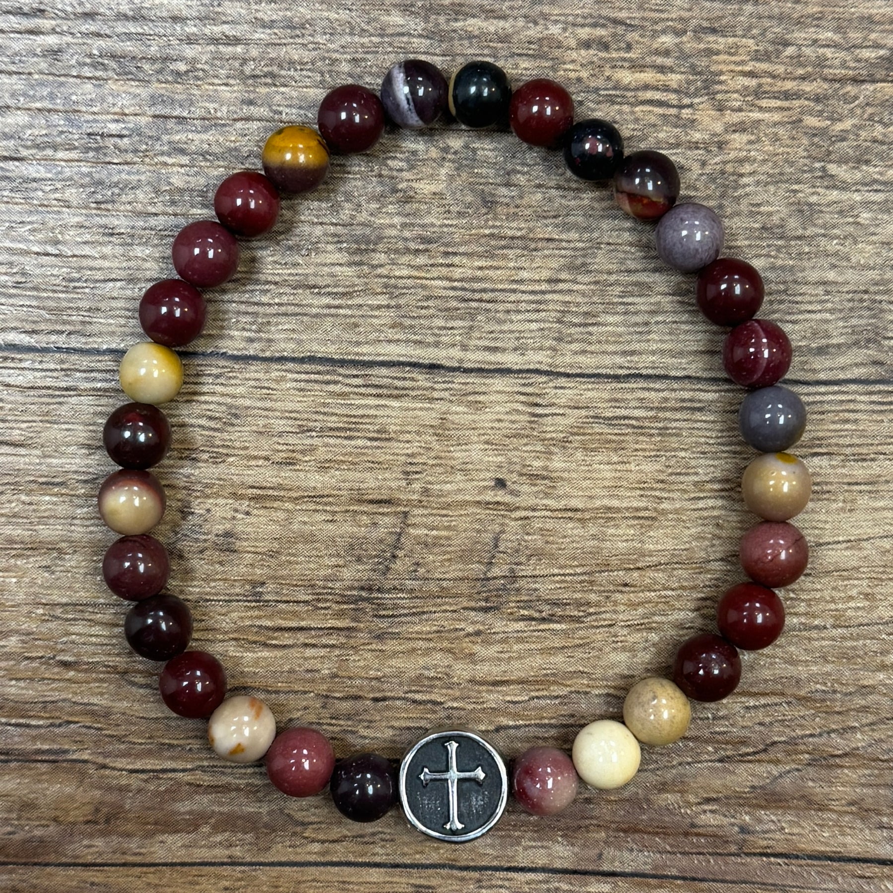 The warm tones of the mookite stone complemented by the silver accent create a unique and eye-catching accessory. Throw this cute bracelet one with just about any outfit!