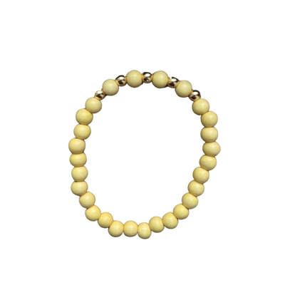 The Kenley 14kt Gold Filled Canary Yellow Wood 6mm Bracelet offers a soft, warm yellow glow that complements any look. Comfortable and effortlessly stylish, this bracelet adds a hint of sunshine to your jewelry collection.