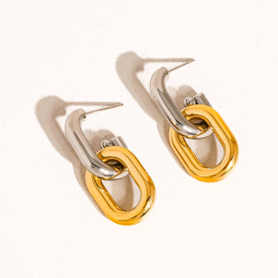 18K Non-Tarnish Double Chain Earring 18K Gold Plating Stainless Steel Silver Plating Measurement (L x W inch): 1.26inx0.54in - Lead and Nickel Free - Hypoallergenic - Water Resistant