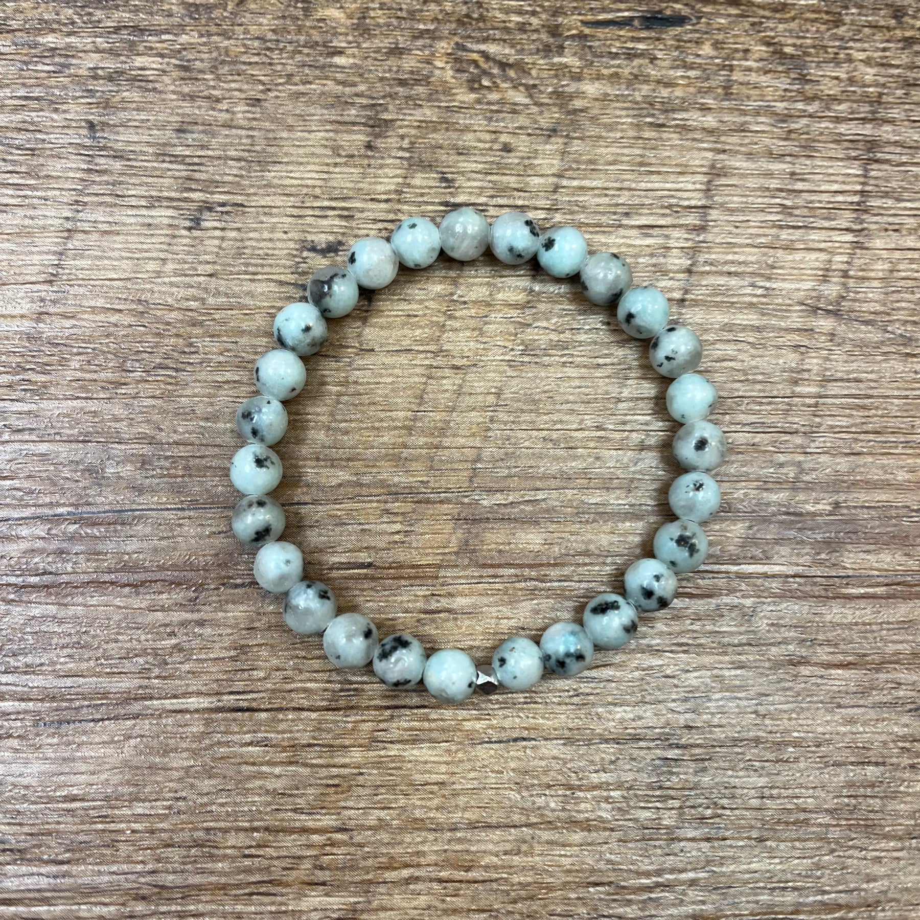 Experience the natural beauty and grounding energy with our Kiwi Sesame Jasper 6mm Bracelet! The light green shade with black specks adds a touch of fun, to the earthy toned beads!