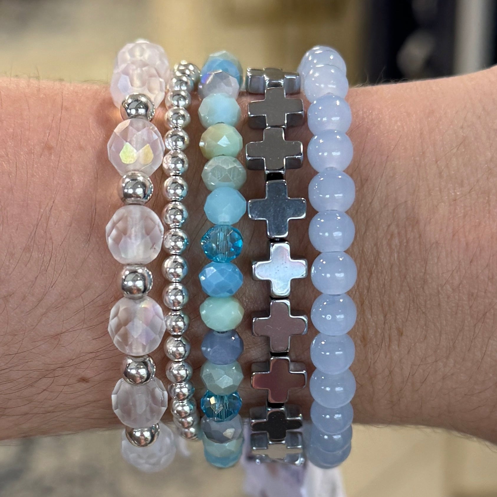 Add a touch of whimsy to your wrist with our Powder Blue 6mm Bracelet. The smoky blue color is perfect for adding a pop of color to any outfit. Playful and versatile, this bracelet is a must-have for any accessory collection.
