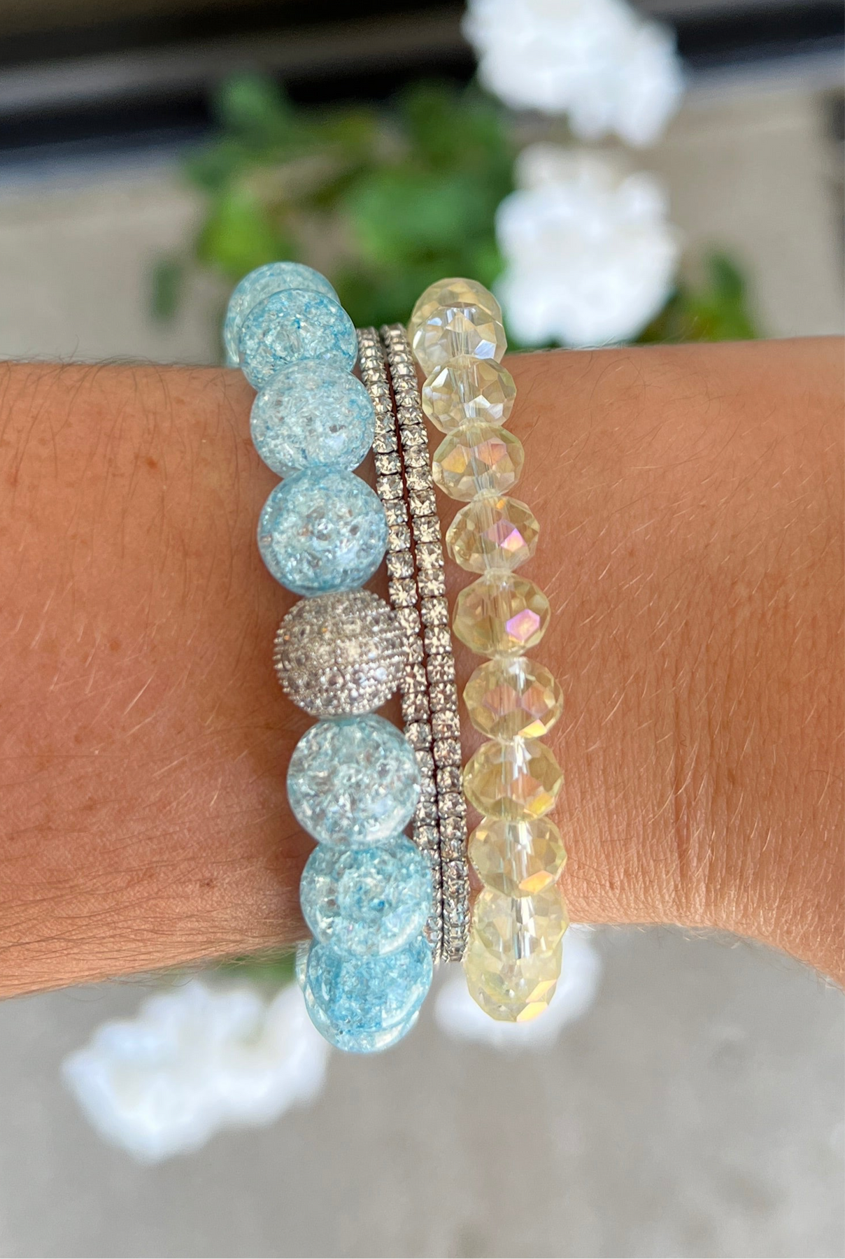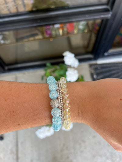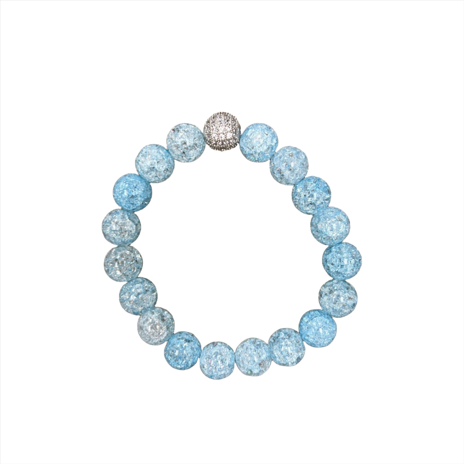 Transform your style with a breathtaking Silver Pave Blue Crackle Glass 10mm bead. Make an unforgettable statement with its vibrant blue hue, stunning silver pave setting, and remarkable crackled finish.