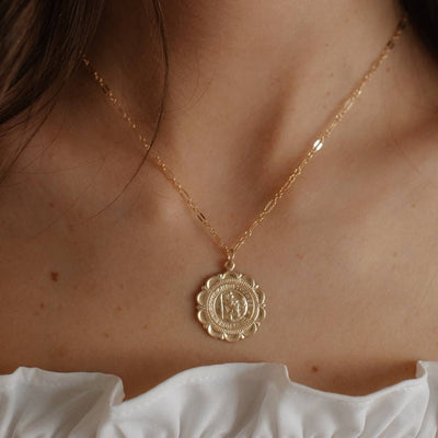 Saint Christopher, patron saint of travelers. 14k 14/20 gold filled pendant and high quality gold filled dapped sequin chain. Length: 18” Pendant dimension: 1” Chain: 14k gold filled dapped sequin chain Lobster clasp High quality 14k gold filled chain which is 14/20 certified and made in the USA. Chain does not turn, tarnish, or rust.